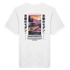 Ein japanischer Frühling in Bewegung: Kirschblüten, Kyotoer Altbauten und ein Zug im Abendlicht. Dieses Shirt vereint traditionelle Ästhetik mit moderner Streetwear – inspiriert von der stillen Energie Japans.