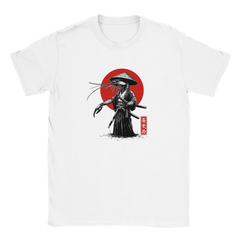 Dieses Shirt vereint Stil, Haltung und eine Prise Rebellion: Die „Shrimpronin“-Garnele steht aufrecht wie ein echter Samurai – mit Katana, Rüstung, Strohhut (Kasa) und erhobenem Blick vor einem kräftigen roten Sonnenkreis. Die detailreiche Schwarz-Weiß-Illustration im japanischen Tusche-Stil macht dieses Motiv zu einem echten Statement für alle, die Charakter zeigen wollen.